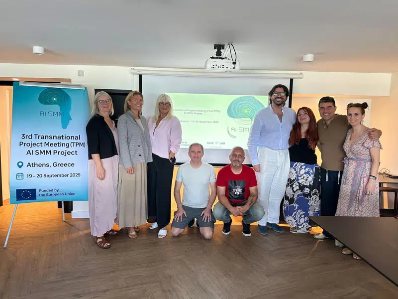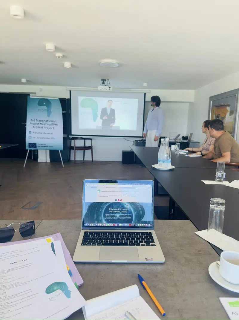 3rd Transnational Project Meeting – Athens On September 19th, our partners from across Europe gathered in Athens for the first day of the AI SMM Project Meeting, hosted by SAIS LAB.The day began with a warm welcome and opening remarks, followed by a Project Progress Review, where each partner organization – Center for Dansk og Integration, Asturia, DIGI, Xeracion Valencia, SAIS LAB, and Volunteer Center Skopje – presented their updates and milestones.We explored the E-learning Platform, led by DIGI and SAIS LAB, through an interactive demonstration and feedback session.The day closed with reflections, a summary of key results, and an evaluation, dissemination, coordinated by CDI